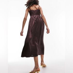 NWT TOPSHOP Corset Bust Satin Midi Dress In Chocolate-brown