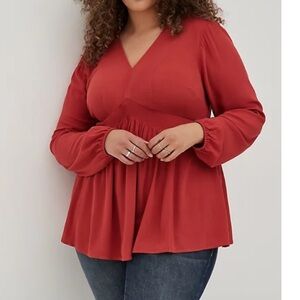 NWT TORRID BABYDOLL BLOUSE - GAUZE SPICE RED