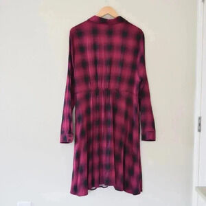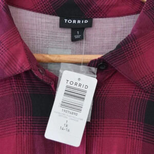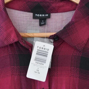 NWT TORRID Collared Long Sleeve Plaid Button Up Dress In Purple & Black