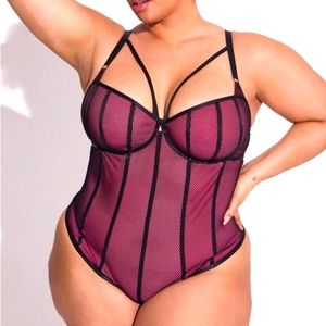 ❤️NWT TORRID LINGERIE BODYSUIT ☆ FISHNET & SATIN BINDING ☆ STRAPPY ☆ OPEN BACK