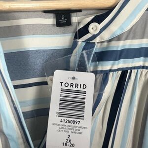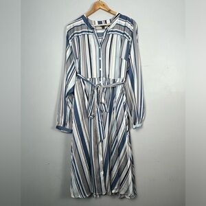 NWT TORRID Midi Flat Charm Long Sleeve Shirt Dress size 2x Layla Stripe Dew