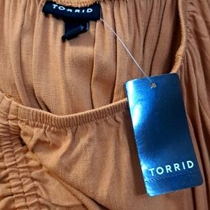 NWT TORRID SMOCKED WAIST JUMPSUIT IN OCHRE