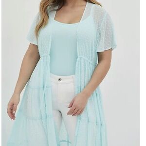 NWT TORRID TIERED KIMONO - CHIFFON CLIP DOT BLUE