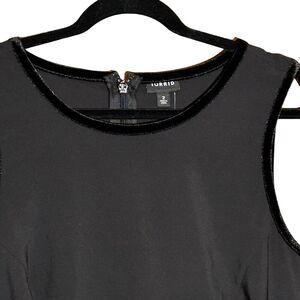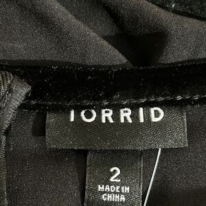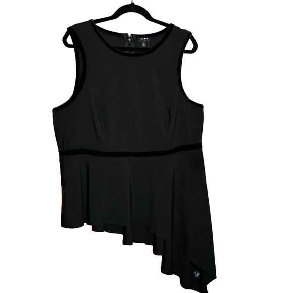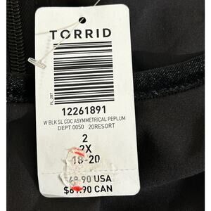 NWT TORRID Women’s Black Crepe Velvet Trim Asymmetrical Peplum Top Size 2X