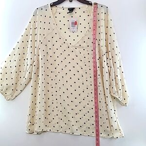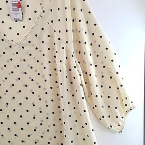 NWT TORRID Women's Cream & Black Polka Dot 3/4 Sleeve Blouse - Size 1X