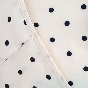 This NWT Torrid Women's Cream & Black Polka Dot 3/4 Sleeve Blouse in size 1X is a stylish and versatile top for plus-size women. Made of polyester, this pullover blouse features a flattering V-neckline and balloon sleeves, adding a touch of elegance to the classic polka dot pattern. With a regular fit and easy care instructions (machine washable), this blouse is perfect for everyday wear and can be dressed up or down to suit any occasion. The cream color adds a fresh and timeless touch to this basic yet chic wardrobe staple.