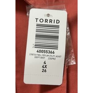 NWT TORRID Women’s Stretch Twill Peplum Utility Jacket Coral Pink - Size 4X/26
