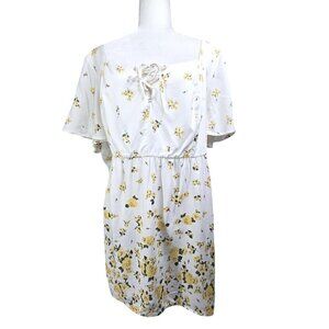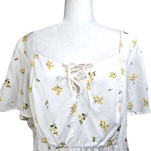 NWT TORRID Yellow White Babydoll Challis Lace Up Hi Low Top Ditsy Floral