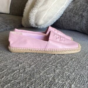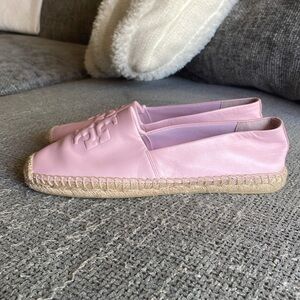 Elegant espadrilles with a soft pink finish. Features signature logo detail. Ideal for casual wear.