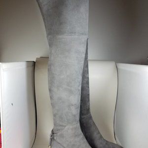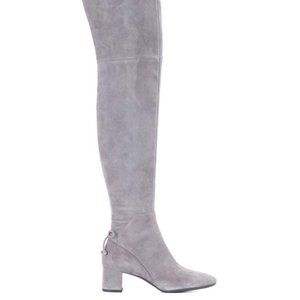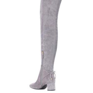 NWT TORY BURCH Laila Gray Suede Over The Knee Gold Plated Heel Boot | Size 6.5