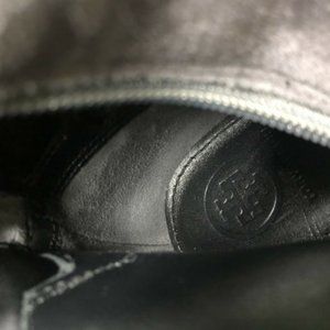 Rear ankle bows with Tory Burch Reva logo gold beads