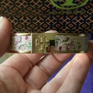 NWT TORY BURCH MILLER LEATHER FLORAL HINGE BRACELET NEW