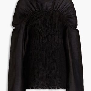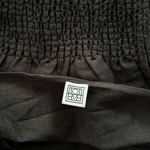 NWT TOTÊME Women's Black Smocked Gathered Silk Blouse- SZ XS
