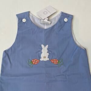 #tpp #theproperpeony #bunny #rabbit #easter #spring #jonjon #romper #shortall #blue #carrots #new #nwt #giftit #spring
