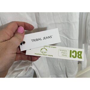 NWT TRIBAL Women's White Blouse Shirt Large $85
