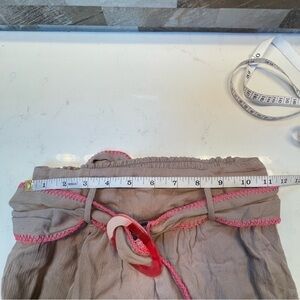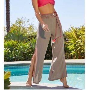 Brittany pant features contrast edge stitching and side slits and offers an adjustable buckle belt with tiered tassel ends. Super cute, light and breezy. A must have for you beach wardrobe.