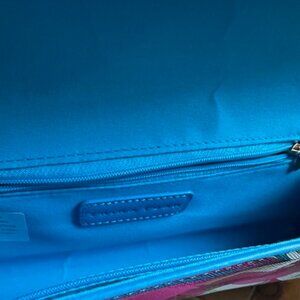 This Trina Turk Clutch Bag is perfect for any occasion. This stylish and chic bag is a must have for adding a pop of color to any outfit. Very spacious inside to carry all your essentials. Can be used as a clutch or add a chain to use as a shoulder or crossbody. Magnetic Closure. Approximate Measurements: 12.5" L, 5" T, 2.5" W