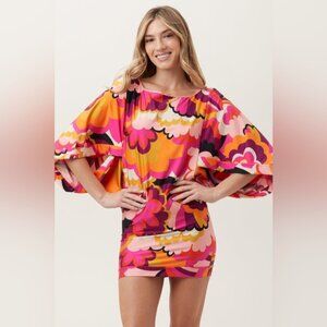 NWT TRINA TURK Fan Fire Swim Tunic Dress 3/4 Drape Wide Sleeve Size L,S,M
