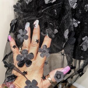 NWT TRIXXI Black Floral Appliqué Tulle Mini Dress Juniors Size Medium