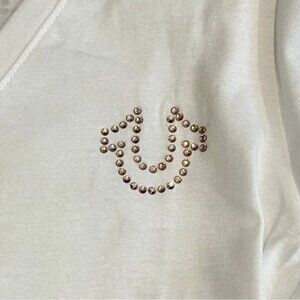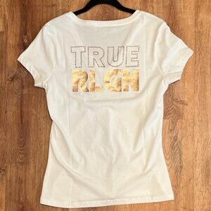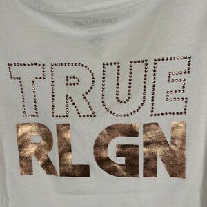 NWT TRUE RELIGION CRYSTAL TRUE RLGN Print VneckcTEE Rhinestone Style 207155 Sz L