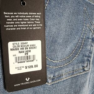 NWT TRUE RELIGION Maisie Raw Hem Denim Shorts Size 29