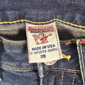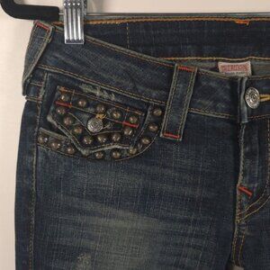 NWT TRUE RELIGION Made in USA 🇺🇸 OF IMPORTED FABRIC DRFTR N/ JOEY WMM W/ STUDS Flare Leg LOW RISE Jeans 10503YF Sz 28