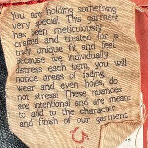 You are holding something very special. This garment has been meticulous or crafted and treated truly unique fit and feel. Because we individually distress each item, you will notice areas of fading, wear and even holes, do not stress! These nuances are intentional and are meant to add to the character