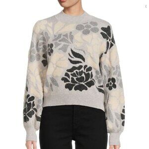 NWT TRUTH by Republic Sweater Long Sleeve Floral Pullover Gray Women's Size XS