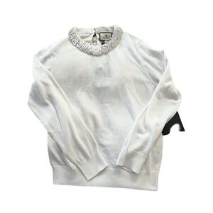 NWT TUCKERNUCK Lina Embellished Wool Blend Crew Neck Pullover Sweater Ivory Sz M