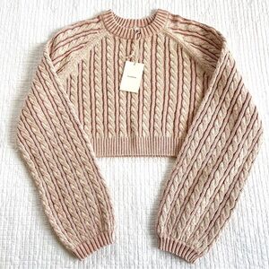 NWT TULAROSA Laney Cropped Pullover Pink Cable Knit Crewneck Sweater