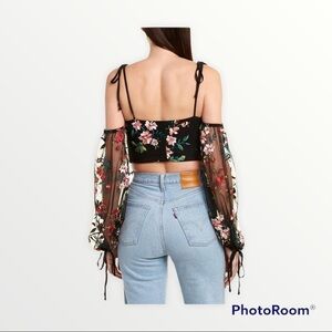 NWT TULAROSA x REVOLVE Adele Black Embroidered Long Sleeve Crop Top, Size XL