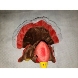 Looking for a unique addition to your Beanie Babies collection? Look no further than this rare and adorable NWT TY Beanie Baby, named 'Gobbles'. This limited edition plush toy is sure to capture the hearts of collectors and fans alike with its vibrant colors and lovable design. Measuring just 5 inches tall, Gobbles was born on November 27, 1996, making it a must-have for any true collector. Its soft and cuddly texture makes it perfect for snuggling or displaying on a shelf alongside other rare Beanies. This special edition Gobbles Beanie Baby is in brand new condition with original tags (NWT) still attached, making it a valuable find for collectors. With its vibrant orange body and colorful feather accents, Gobbles is sure to stand out in any collection. Don't miss your chance to add this rare and lovable Beanie Baby to your collection. Order now before it's gone! - Limited edition collectible - Vibrant orange body with colorful feather accents - Measures 5 inches tall - Brand new condition with original tags (NWT) - Perfect for snuggling or display #BeanieBabies #TY #Collectibles #RareFind