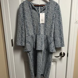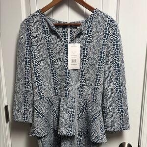 NWT TYLER BOE Women's Blue Reptile Print Long Sleeve Peplum Knit Dress Sz S