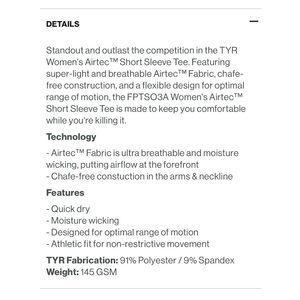 NWT - TYR Airtec Women's Short Sleeve Tee, Black Mesh, Size S (4/6)