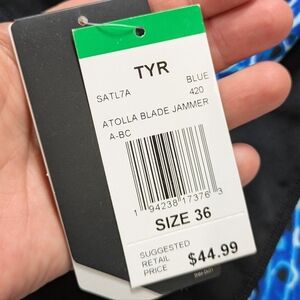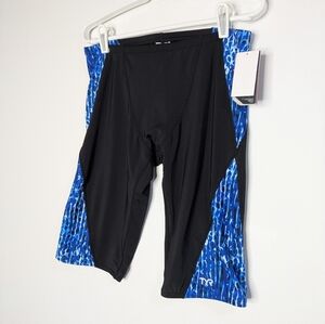 NWT TYR Black Blue Atolla Blade Jammer Competitive Swim Bottoms 36.