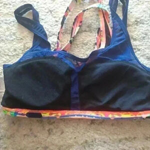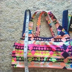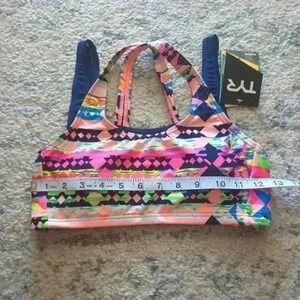 Colorful Brand New Double Strap Sports Bra by TYR. Padded. Criss Cross straps in the back. No stains or holes. UPF 50. Comes from a smoke free and pet free home.
