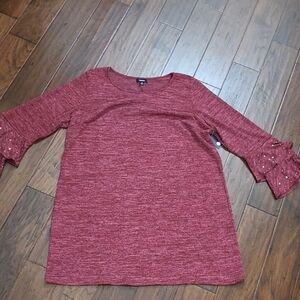 NWT Tacera Cranberry Red Dress with Ruffled Sleeves & Gold Accents size 2X