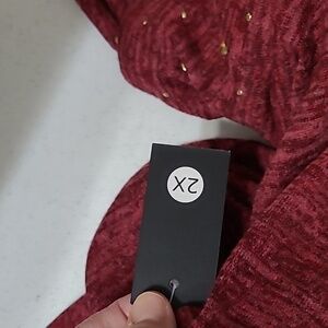 NWT Tacera Cranberry Red Dress with Ruffled Sleeves & Gold Accents size 2X.
