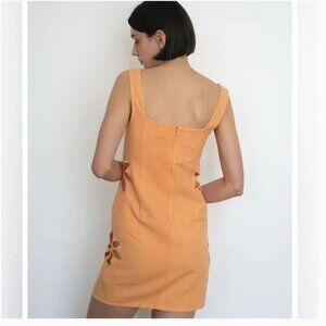 NWT Tach Afrodita Mini Dress Linen Floral Embroidered Cutouts Orange XL