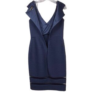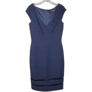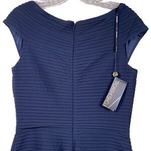 NWT Tadashi Shoji Amata Pintuck Jersey Dress Size Small Knee Length V-Neck Navy