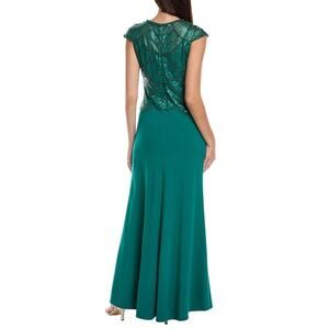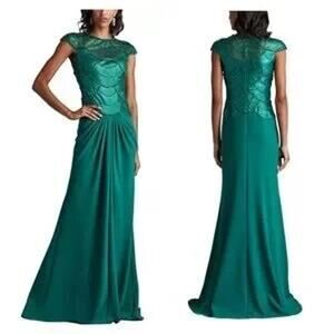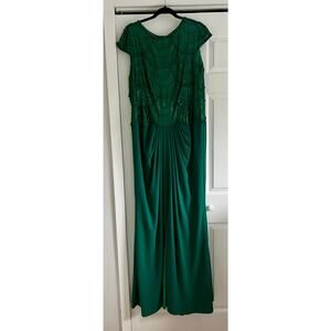NWT Tadashi Shoji Coralia Beaded Green Evening Party Gown Stretch Sz 18 $518