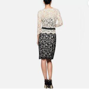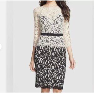 NWT Tadashi Shoji Formal Illusion Lace Two-Tone Gown With Grosgrain Ribbon Belt
