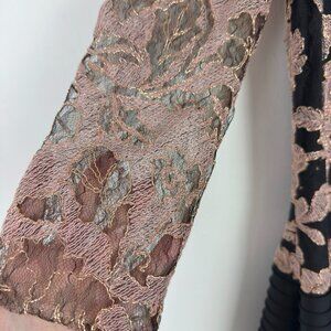 NWT Tadashi Shoji Mika Dress Floral Metallic Black Champagne Size 10 NEW