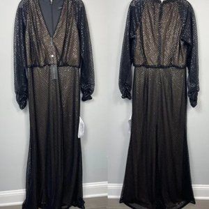 NWT Tadashi Shoji Samira Black/Nude Sequin gown - Size 14