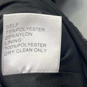 Brand new with all original tags, this dress is crafted with a black lace sequin-embellished overlay and nude underlay. The stunning sequin detailing is sure to catch the light and turn heads. With a v-neck, ruched long sleeve details and a high front slit, this gown is both elegant and modern. The dress zips in the back with a hook closure. It is a size 14, and I've included detailed measurements in the photos.