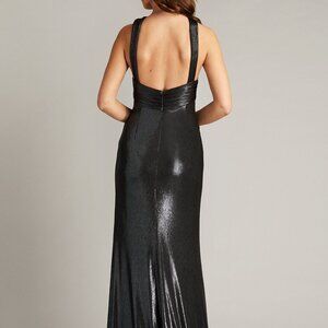 NWT Tadashi Shoji carlini draped metallic gown dress titanium size xs