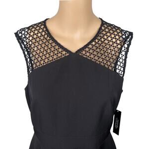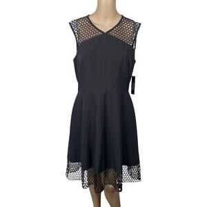 NWT Tahari ASL Black Mesh Trim Fit & Flare Dress