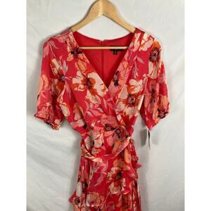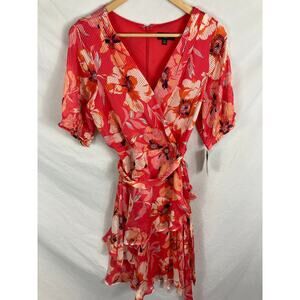 NWT Tahari ASL Floral Pleated Ruffle Faux Wrap Dress Size 10