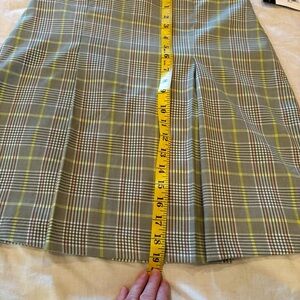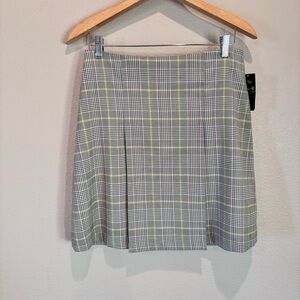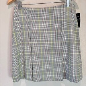 NWT Tahari ASL Women's Pleat-Front Plaid Skirt, size 8, Avocado/Lime,Preppy Fall