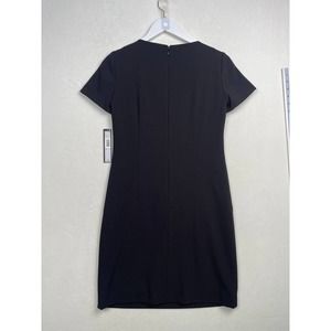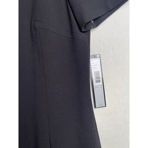 New with tags black Tahari sheath stretch dress notched round neck with hand pockets, above knee length, short sleeves and back hidden zippers.